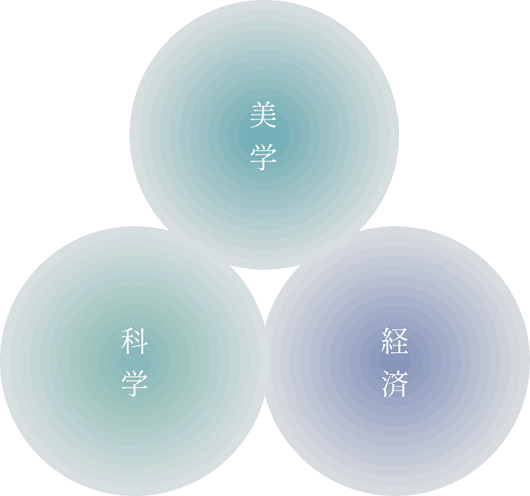 すべての商品・サービスにおいて美学・科学・経済の調和を大事にします。